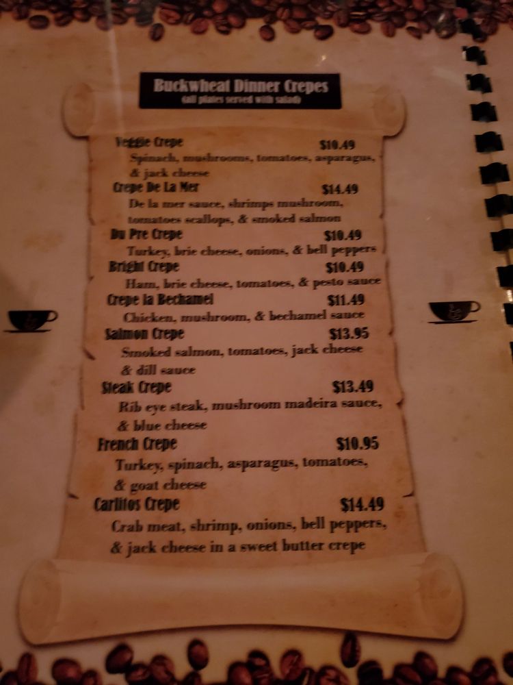 Crab meat, shrimp, onions, bell peppers, & jack cheese in a sweet butter crepe